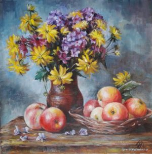 Obraz olejny na płótnie autorstwa art. plastyka STUPKI, krosno 26×32 cm. (50x40cm z drewnianą ramą)
