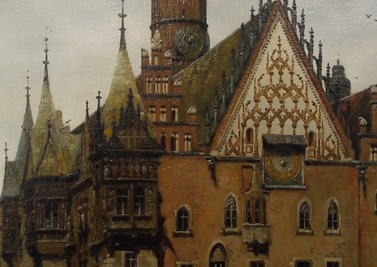 Obraz olejny na płótnie w formacie 32 x 26 cm. w drewnianej ramie,