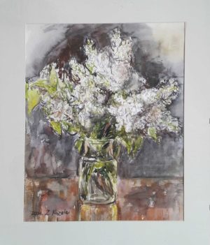 Akwarela 56×66 cm w antyramie autorstwa Zofii Kozeli .
